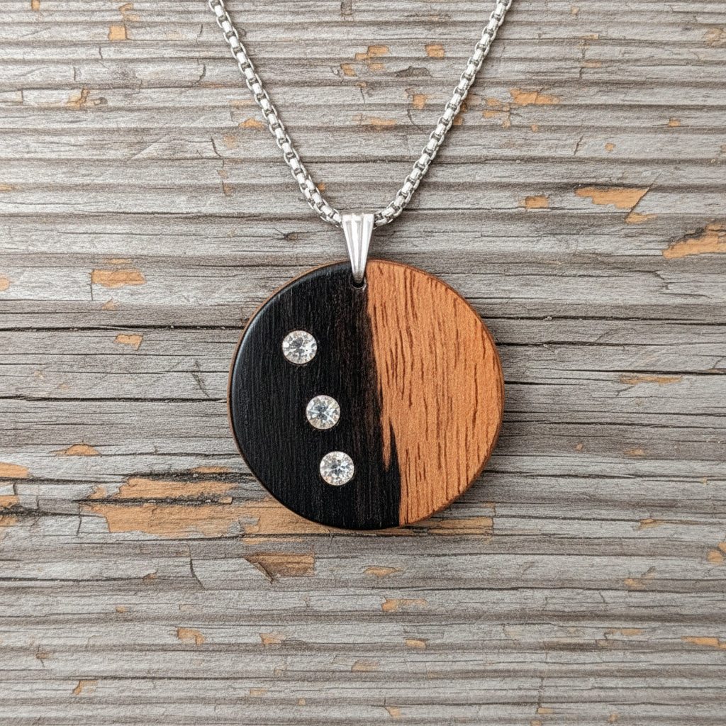 - Halskette mit einem Anhänger aus Ebenholz und Strasssteinen