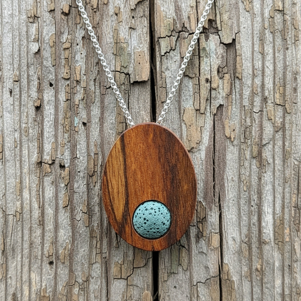 - Halskette mit einem Anhänger aus Palisandermaser und einem Lava-Stein